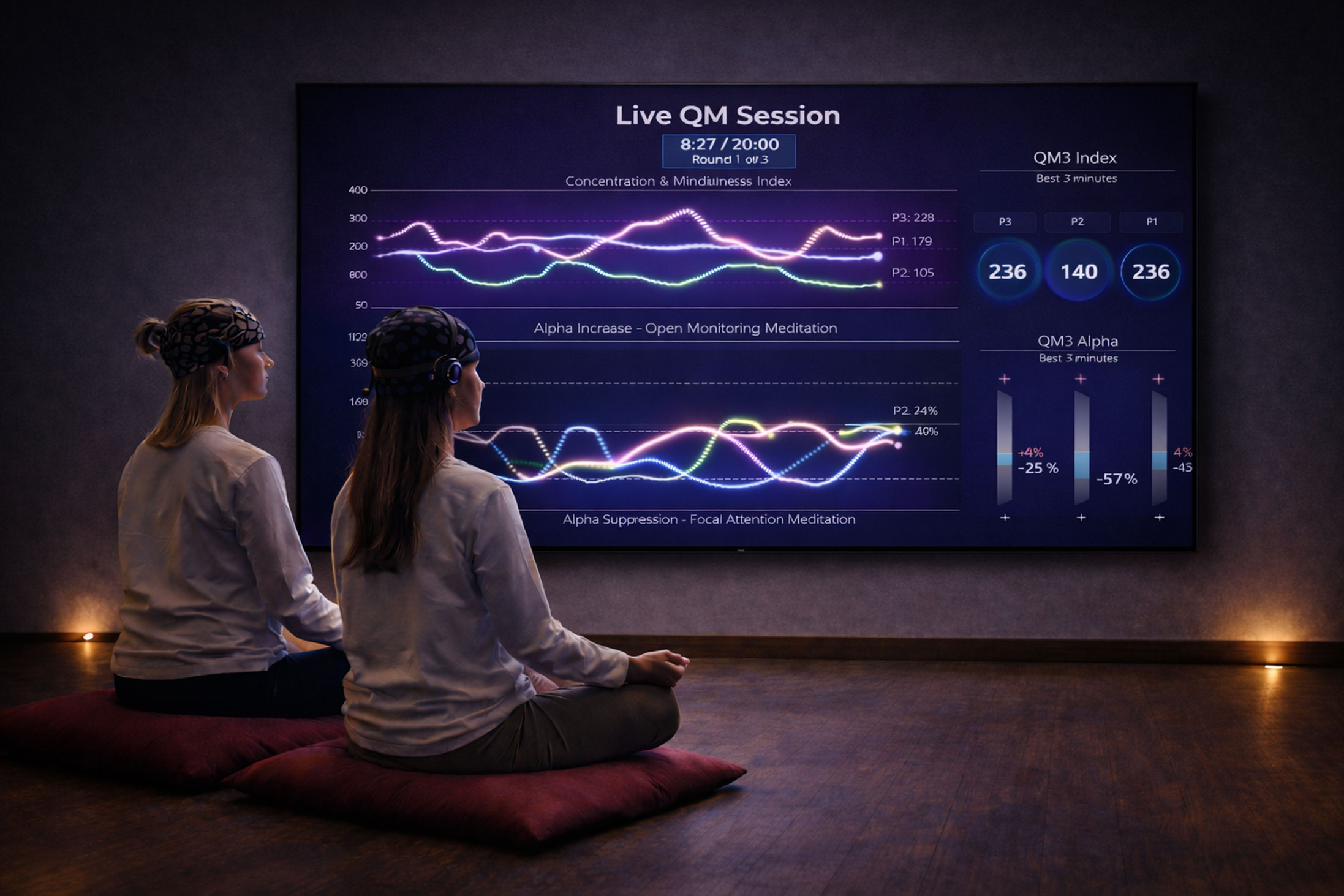 All sessions include live EEG tracking, real-time visualization, and expert guidance. Group sessions offer a unique opportunity to compare brain activity and learn from each other’s techniques.